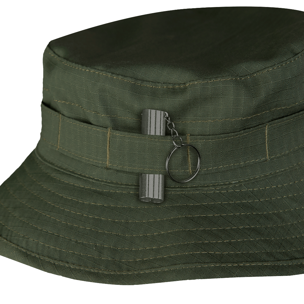Панама має шнурок для фіксації, який кріпиться з внутрішньої сторони. Сам шнурок регулюється якісним, пластиковим замком-фіксатором. Навколо верхівки капелюха присутня стрічка MOLLE для додаткового обладнання або аксесуарів.
